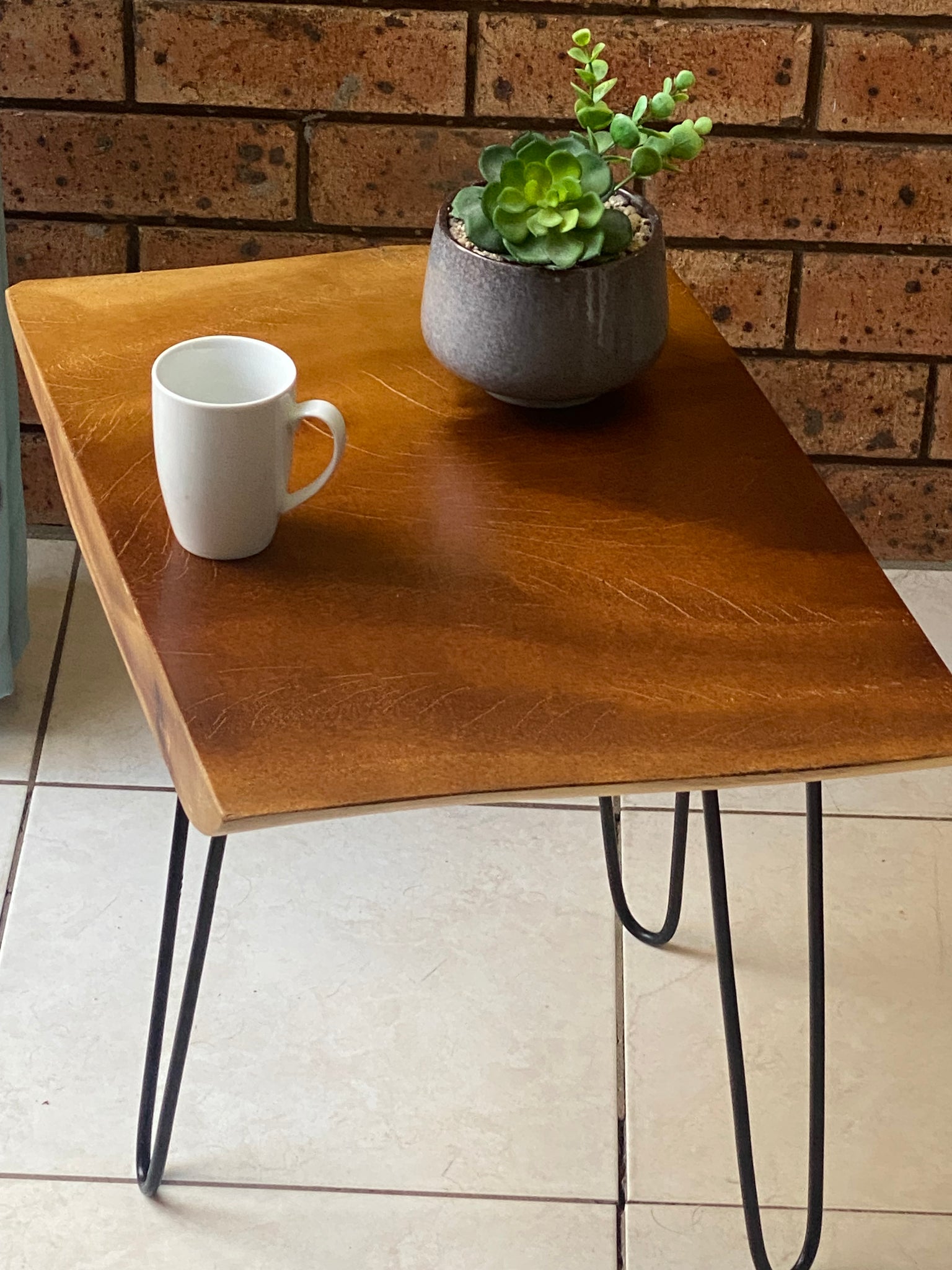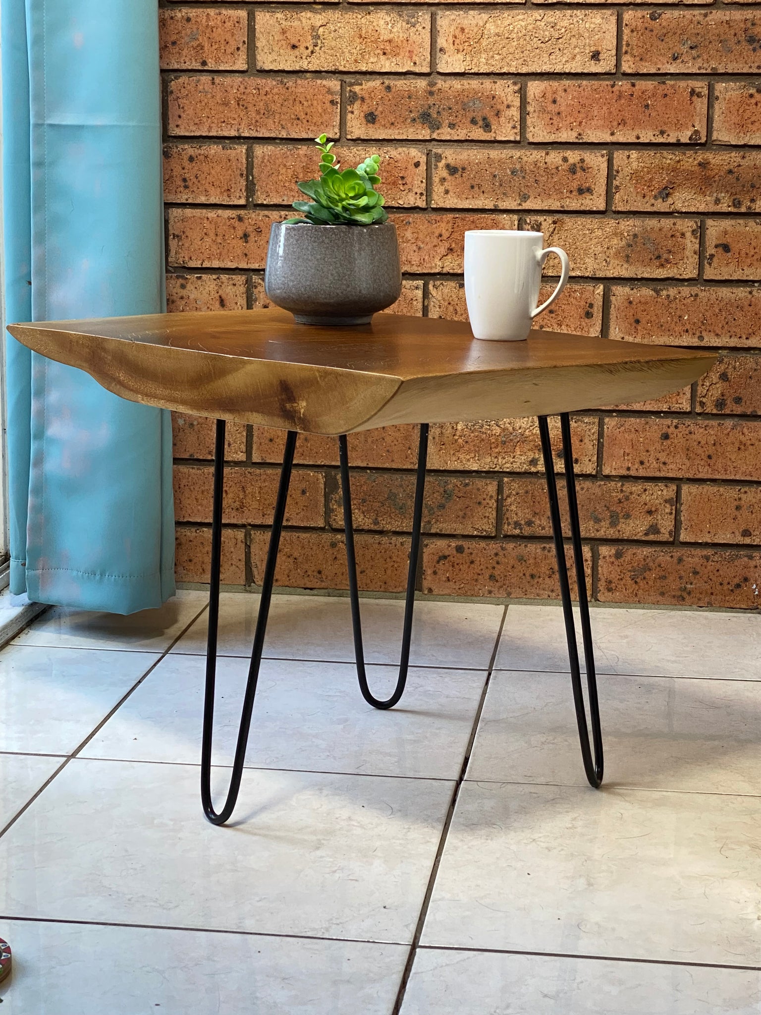 These Live Edge Side Tables are cut off whole piece of solid timber from raintree wood, known for its rich and unique grains. The sapwood (outer side timber) is commonly seen as lighter-colored compared to the heartwood (part in the center of the timber).