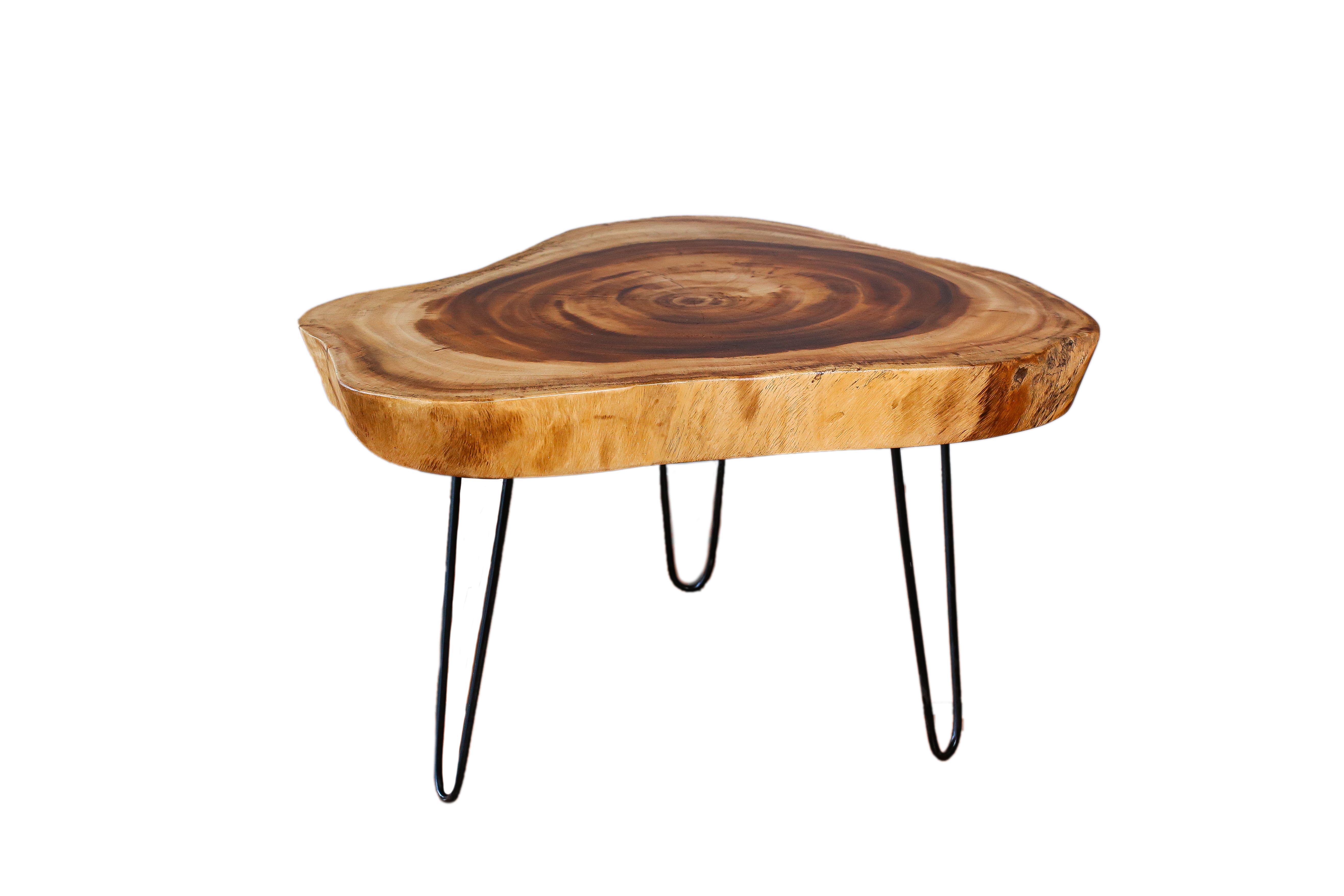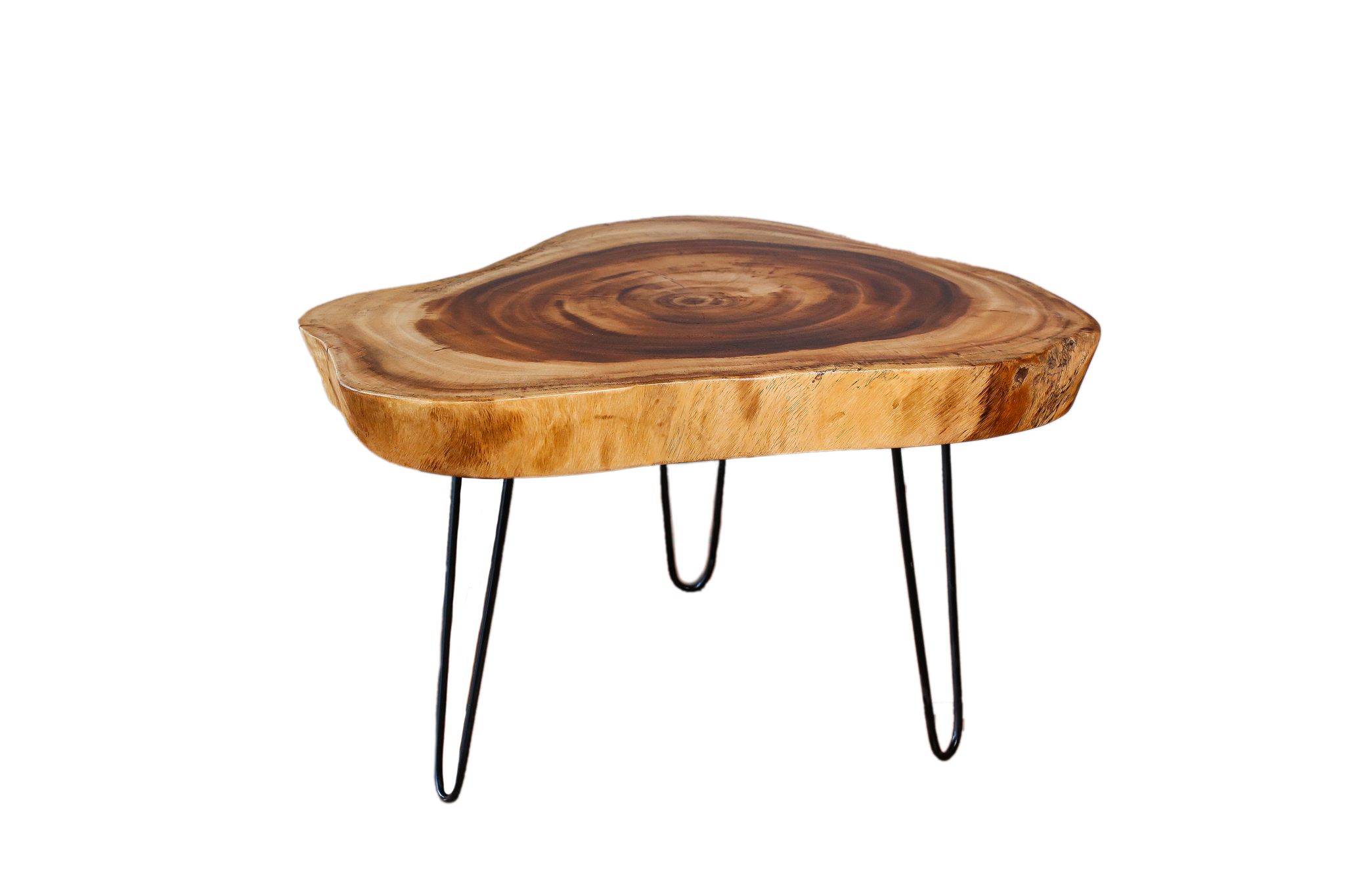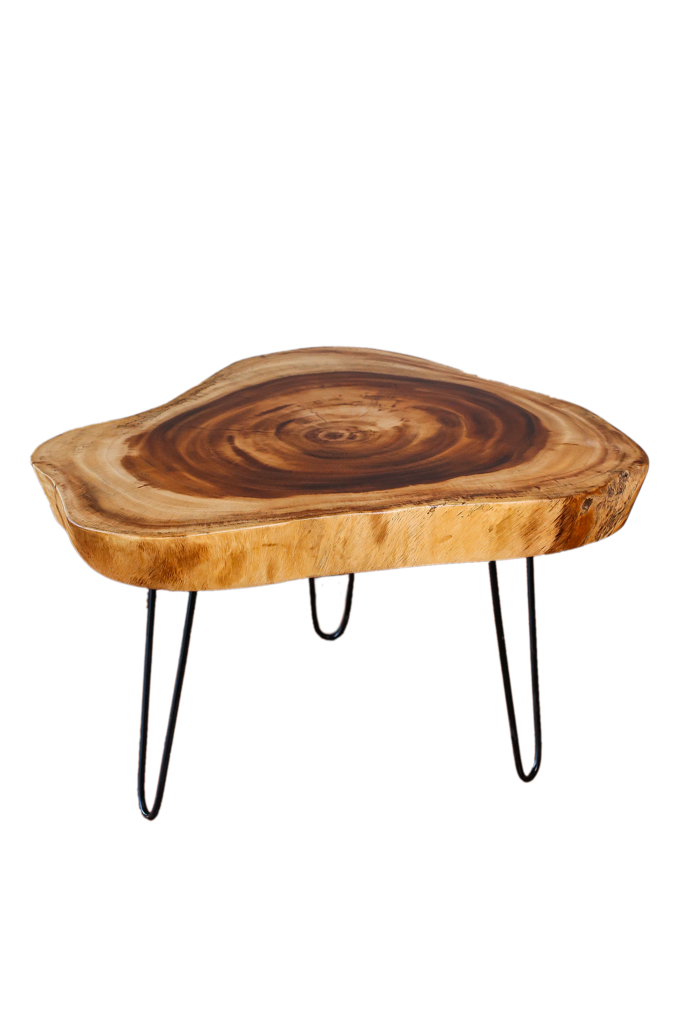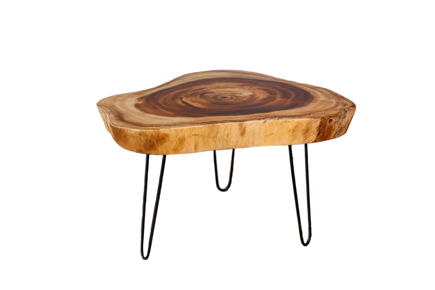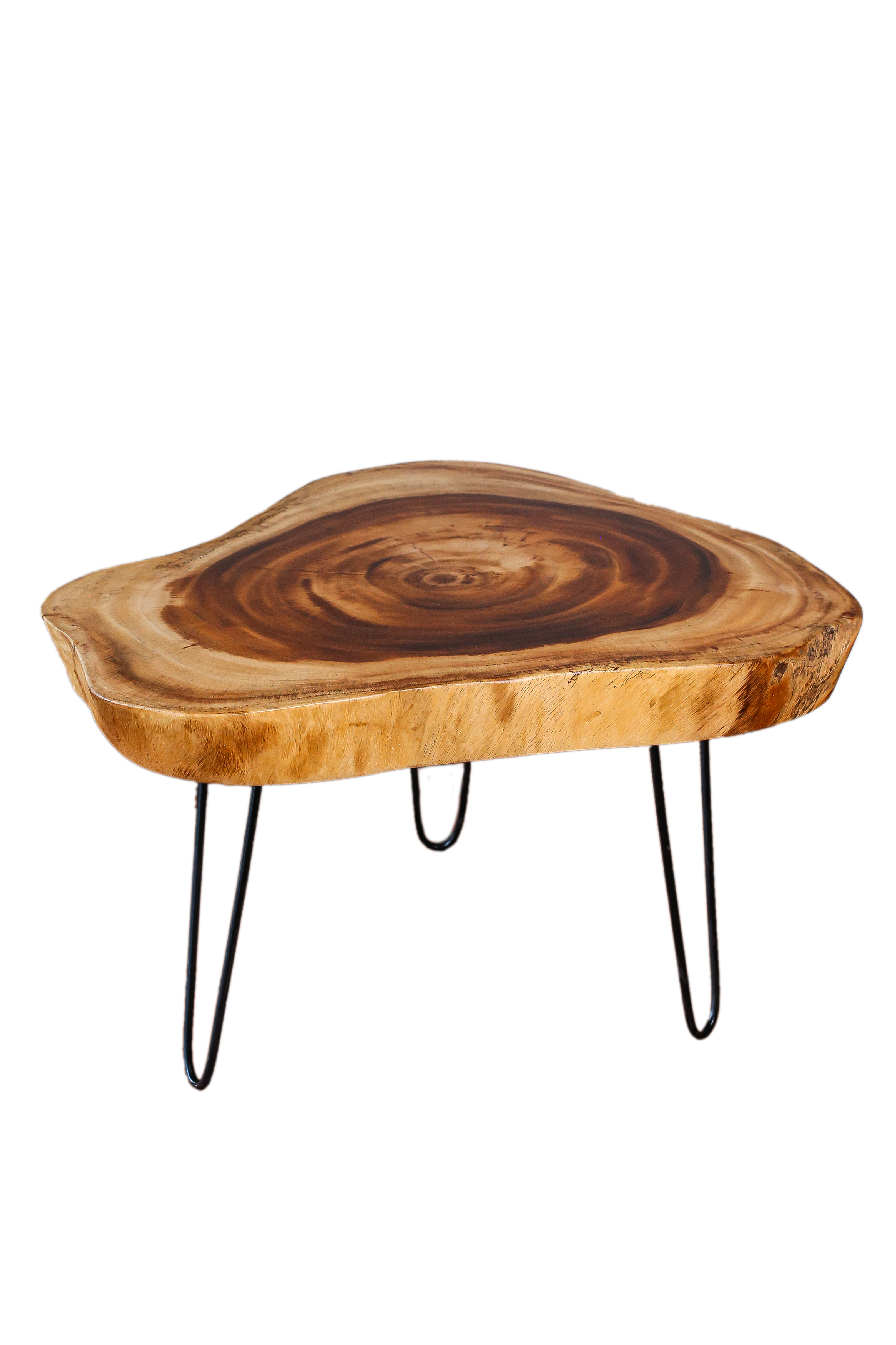 The "Kimberly" Coffee Table is purely handcrafted and finished with clear varnish to max the natural charm of raintree wood as possible. A great addition to your home and a sure eye-catcher to reflect the owner's love of nature. Sliced off a tree trunk and kept the natural shape of the timber, gives each table of its own look and every piece is unique! Raintree wood is known for its waterflow like grains and contrast between its sap wood and heart wood. Golden brownish colors which goes well with either modern or vintage setting homes. The timber is high density and durable, suitable for both indoor or outdoor use.