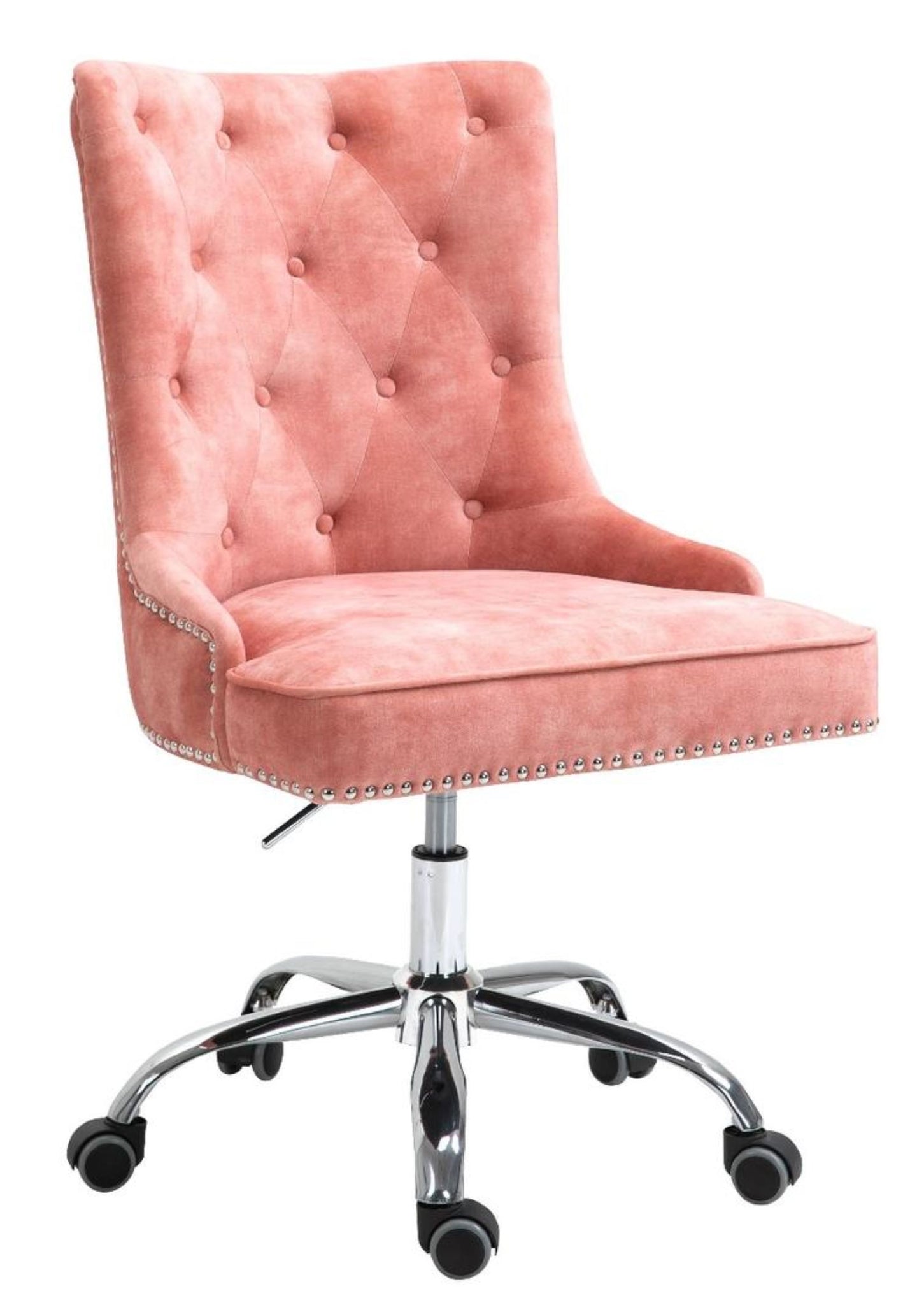 Velvet Upholstered Tufted Office Chair with Studs-Pink
