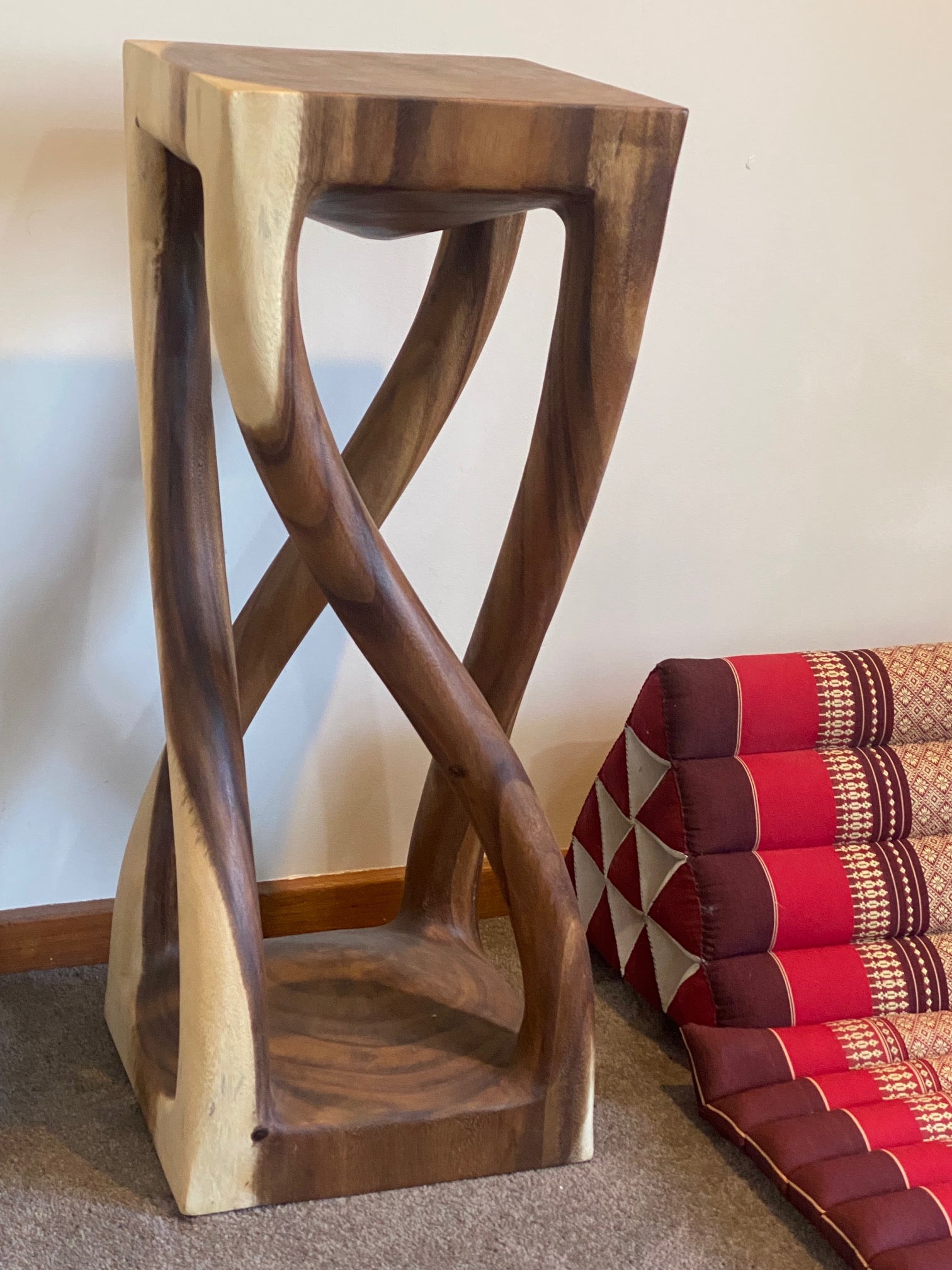 Twist-shape Wooden Stool/Corner Table/Lamp Table/ Bar stool skillfully carved out of a single whole Tree Trunk